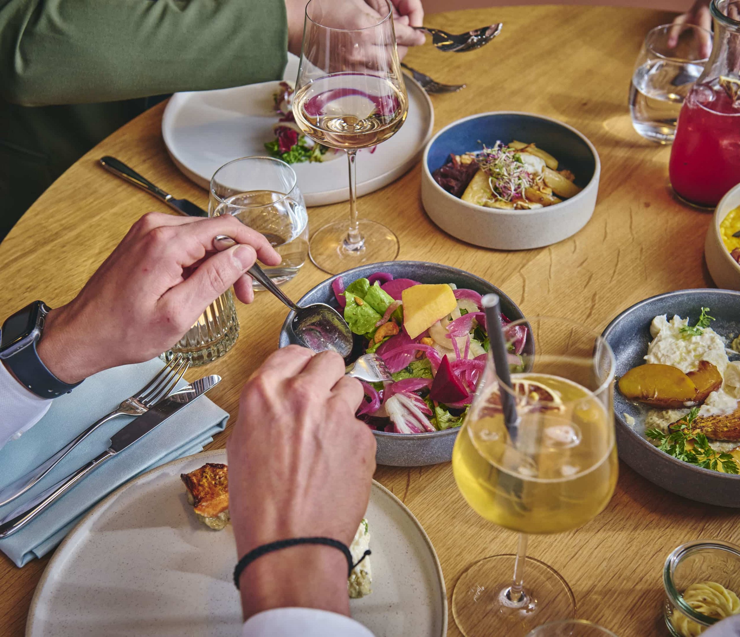 Im hoteleigenen Restaurant Hedwig dreht sich alles um ehrlichen Geschmack und hochwertige Zutaten aus der Region. Das Frühstücksbuffet ist reich an frischen, regionalen Produkten; mittags gibt’s hausgemachte Menüs, abends eine kreative Sharing-Küche – mit vielen veganen Optionen. Die Weinkarte glänzt mit biologisch produzierten Tropfen und Naturweinen mit Charakter. An warmen Tagen lässt sich das kulinarische Erlebnis auf der sonnigen Terrasse im Innenhof auskosten – Genussradurlaub wie er sein soll.