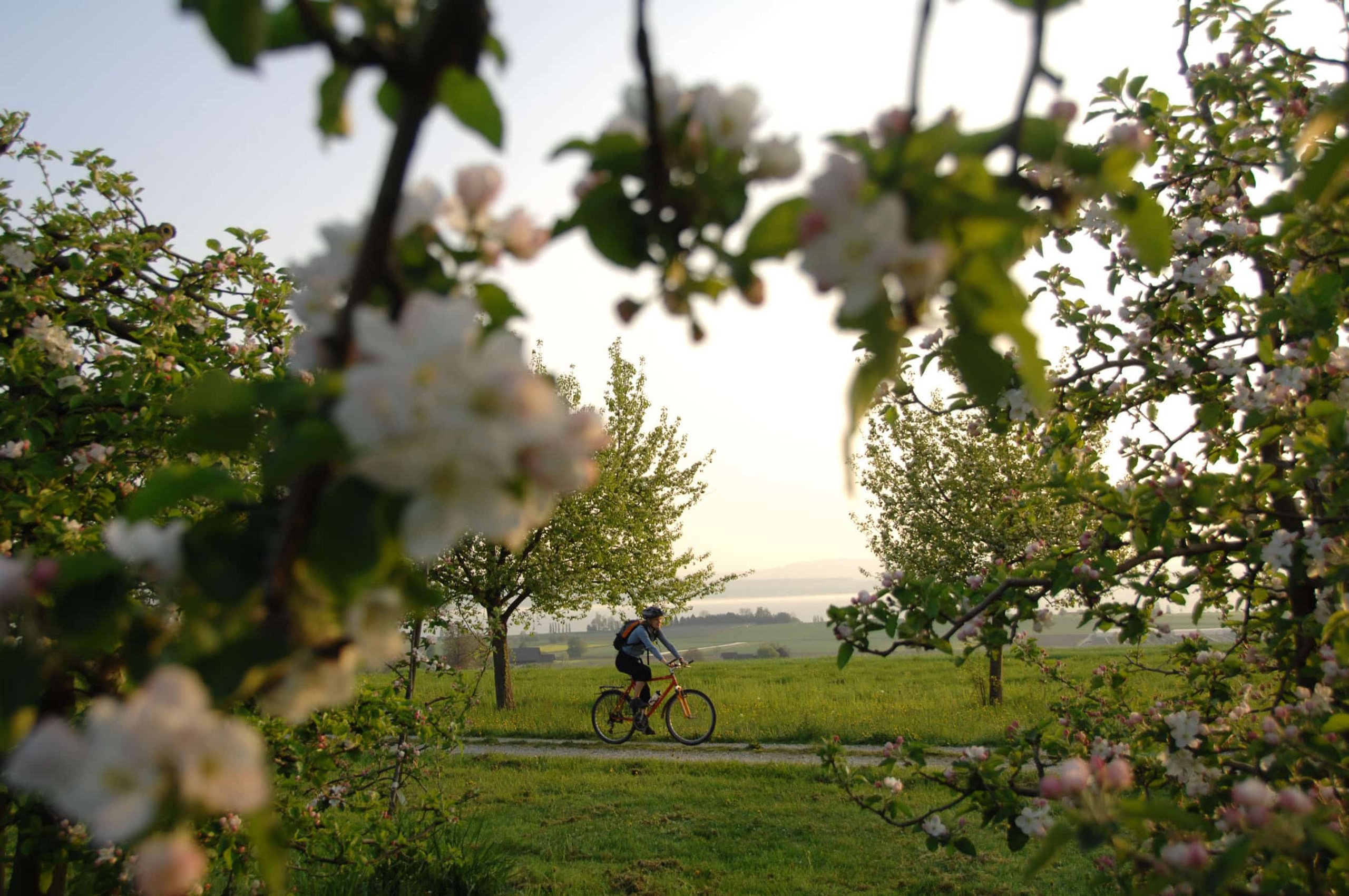 Besonders im Frühling entfaltet der Thurgau seinen ganzen Charme, wenn die Apfel- und Kirschbäume in voller Blüte stehen. Die Bluescht-Velotour führt durch ein weiß-rosa Blütenmeer und verbindet die schönsten Landschaften der Region. Wer wissen möchte, wann die Blütezeit ihren Höhepunkt erreicht, kann sich über das Bluescht-Telefon informieren. Doch nicht nur im Frühling ist der Thurgau eine Reise wert – im Herbst laden die sonnenverwöhnten Weinberge zur Verkostung prämierter Tropfen ein, etwa entlang der Ostschweizer Weinroute.