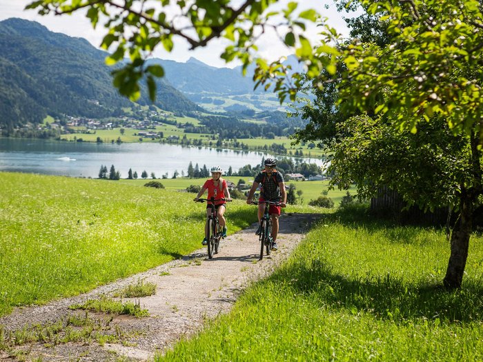 Quiet side valleys and lively little towns: getting on your bike without having to worry about arduous climbs - that's what Tyrol's idyllic cycle trails are all about. On over 1,000 kilometres of cycle paths, leisure cyclists and families get their money's worth. The routes lead past crystal-clear rivers and lakes, tranquil valleys, lush mountain meadows, historical monuments and historic castles. Varied cycle paths in Kufsteiner Land await you on your cycling holiday in Tyrol.