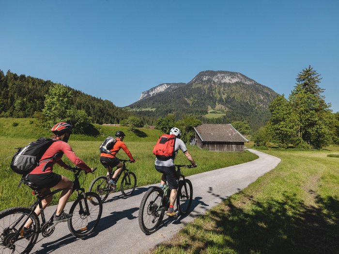 The Pölven cycle tour leads from Bad Häring around the striking Pölven via Söll and Schwoich. Bananensee lake, Kaiserblick views and the Bierol craft beer brewery combine scenic cycling with regional delights.