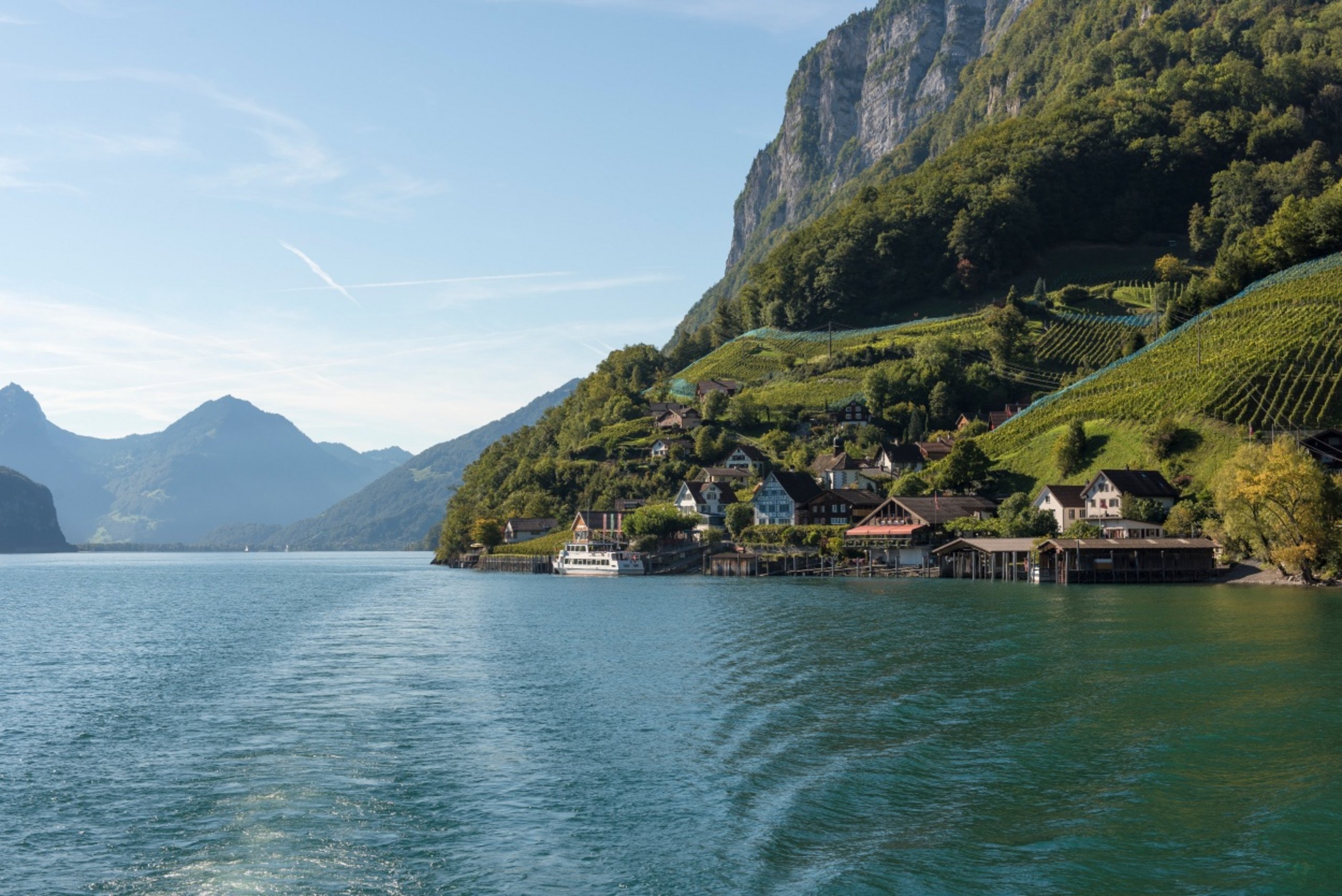 The tour starts at the Intersport Network in Unterterzen. You leave the lakeshore and cycle up to Quarten. Now you reach the highest point of this tour. The route continues down to Murg. You always have Lake Walen in view. Once in Murg, the tour continues along the lake to Weesen. As soon as you arrive in Weesen, you load your bike onto the boat, which takes you to Unterterzen with a few stops along the way. Back on land, you ride to the Intersport Network.