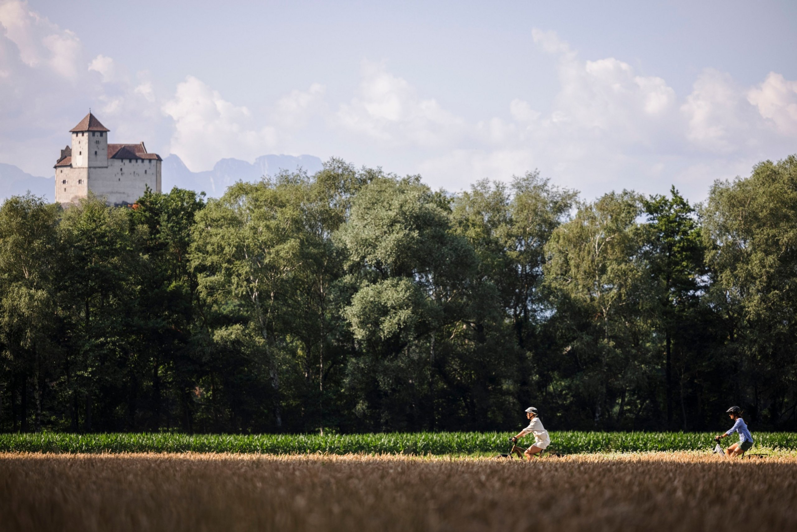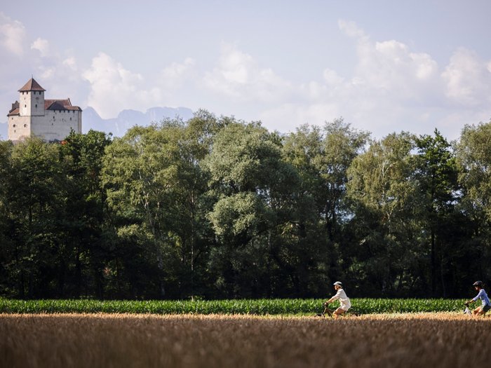 Vaduz Castle is the Principality's landmark and has towered over Vaduz for around 700 years. It has been the residence of the Princely Family since 1938. The route then crosses the Rhine via the energy bridge and leads to Buchs. Werdenberg Castle and town are still largely in their original 13th century state. The ascent to the Wartau castle ruins is easy to manage on an e-bike. The route continues down to Sargans Castle. Gutenberg Castle in Balzers, also from the 13th century, can be seen from afar, standing on a rocky spur over 70 metres high. Finally, the castle tour leads back to the starting point on leisurely cycle paths. The ascent from Plattis to Gretschins is only suitable if you are in good physical condition. (145 metres in altitude over 2 kilometres) Alternative route: From Sevelen, follow the Föhn Skate No. 62 to Trübbach.