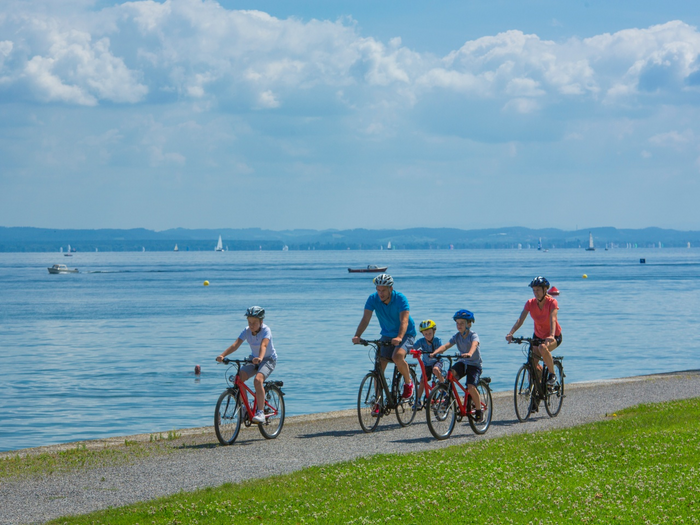 With Lake Constance almost always in view, the international Lake Constance cycle route leads through Switzerland, the Austrian Vorarlberg and Germany.