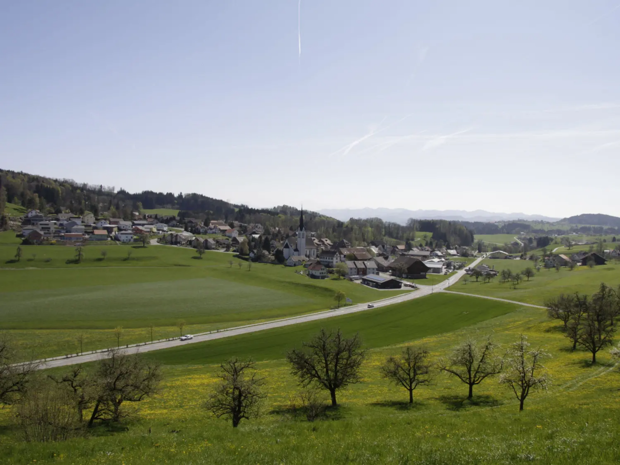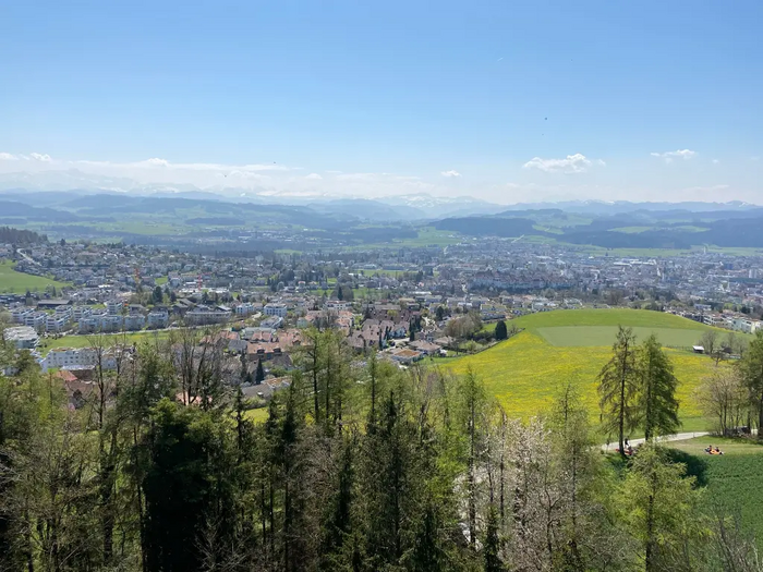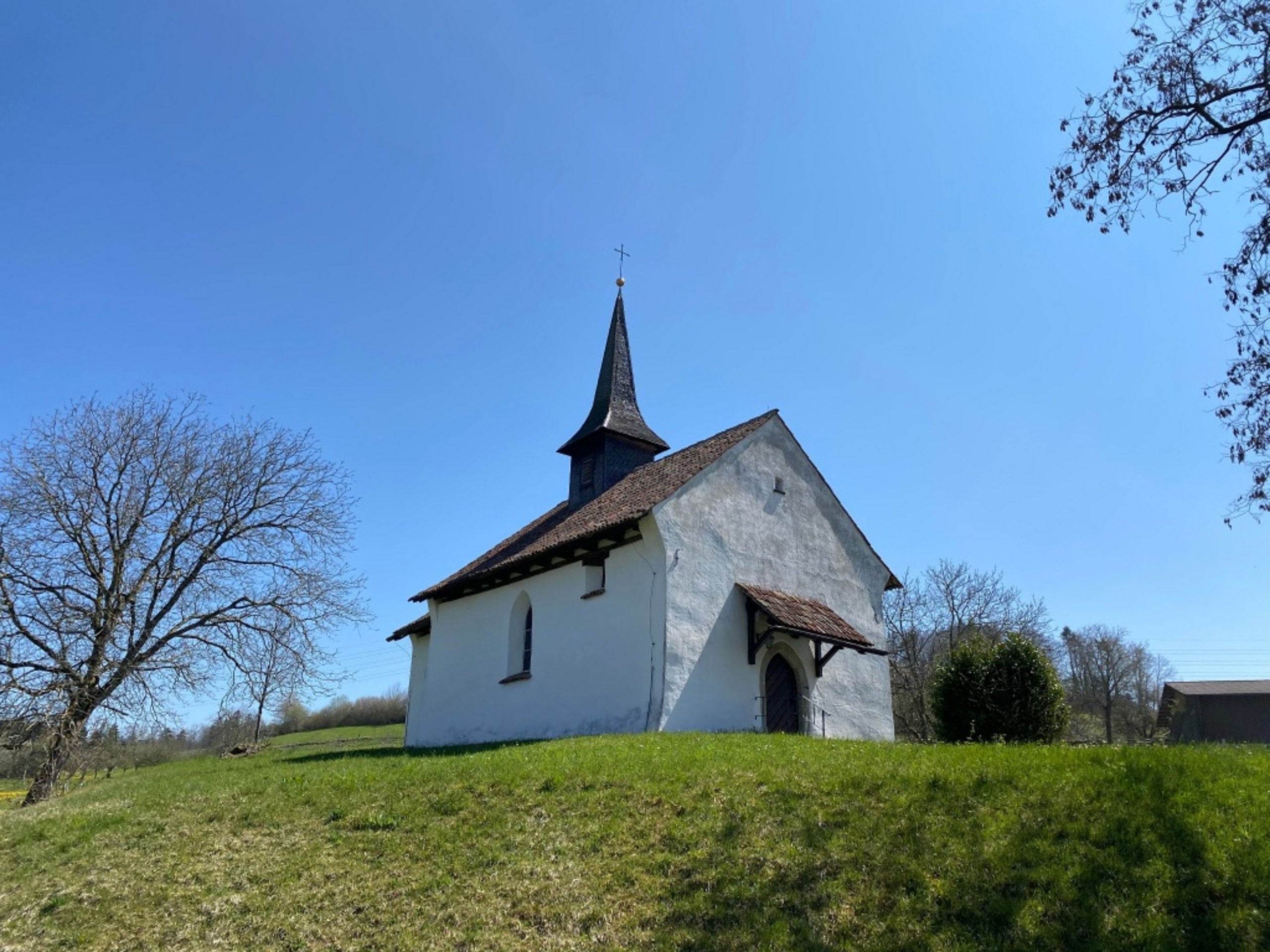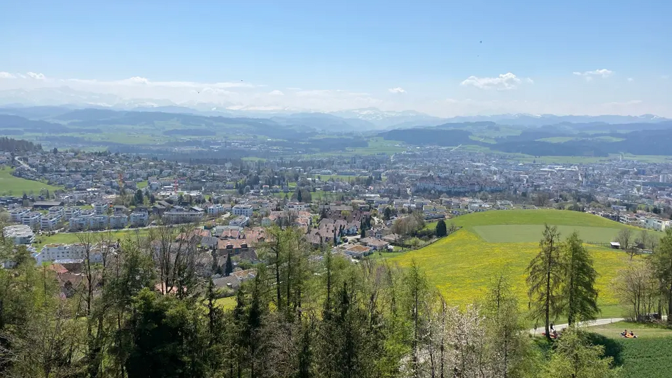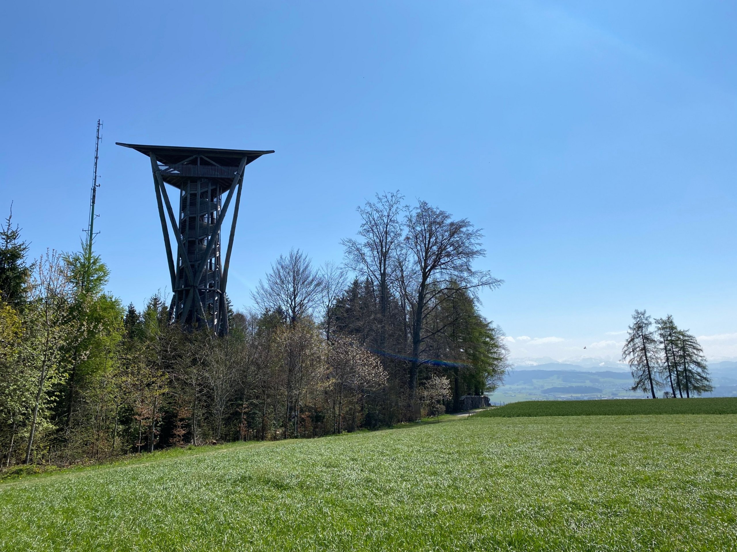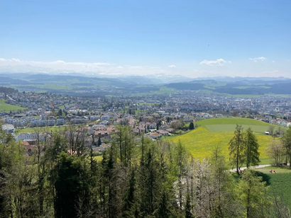 The short circular tour starts at a place with great views. In view of the wonderful panoramic view of Lake Constance, the Alps and the Hegau in the south of Baden-Württemberg, you might think that the Hotel & Restaurant Nollen is higher up. Shortly after Wuppenau is the Hasenlooweier. The pond is an important spawning ground for frogs, toads and newts. After a short but intense climb, you have earned the panoramic view from the Wiler Turm. The viewing platform of this unique wooden structure is 34 metres high. The path back to Wuppenau leads through the lush green landscape of the Thurgau and its gentle hills. In spring, fruit trees full of blossom can be seen, while in autumn the magnificent fruit hangs from the trees. In Braunau, the route leads directly past the Catholic chapel of St Michael.