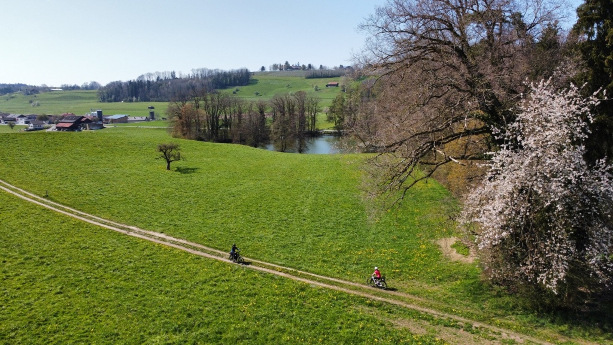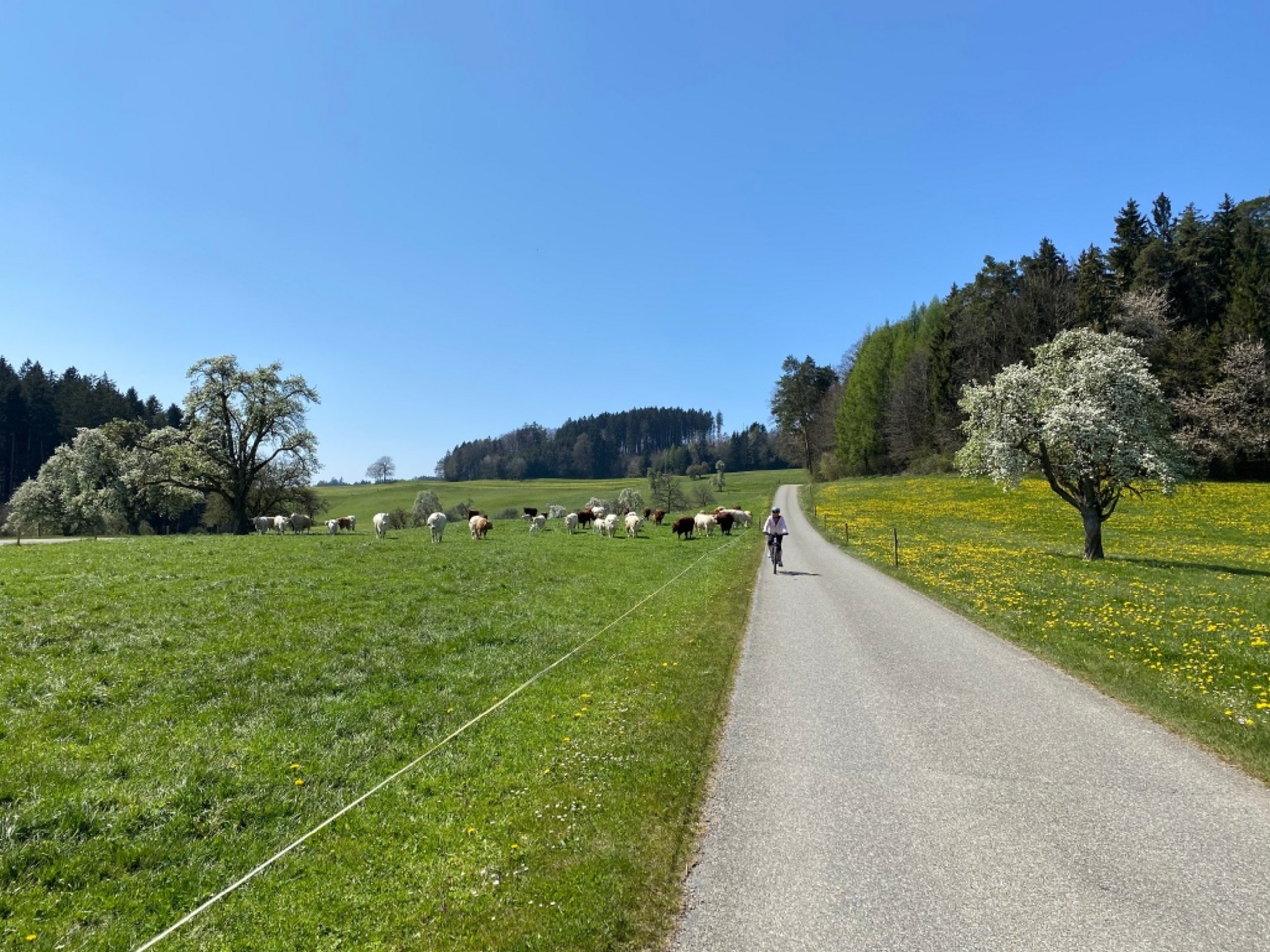 The lush green landscape with its gentle hills can be experienced in a special way on the circular tour from Nollen to the Wiler Turm.