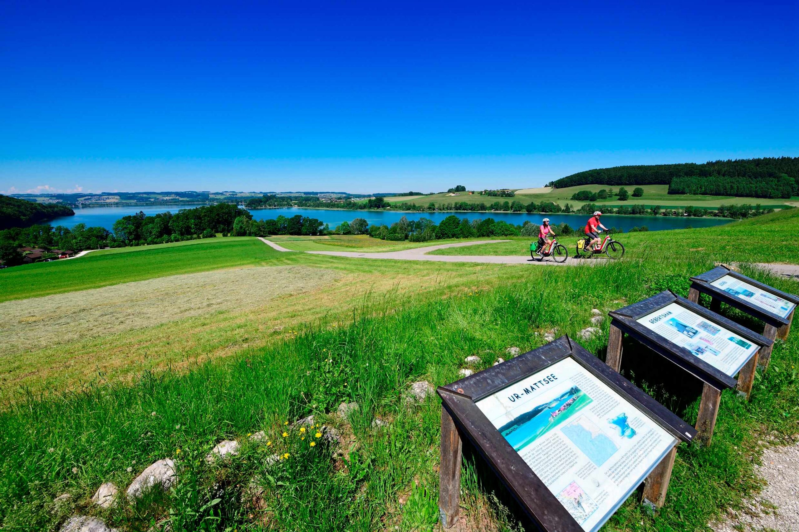 The Tannberg circular cycle route offers relaxed cycling through an idyllic landscape. Gentle hills, wide meadows and beautiful views of Lake Mattsee make the tour particularly varied.