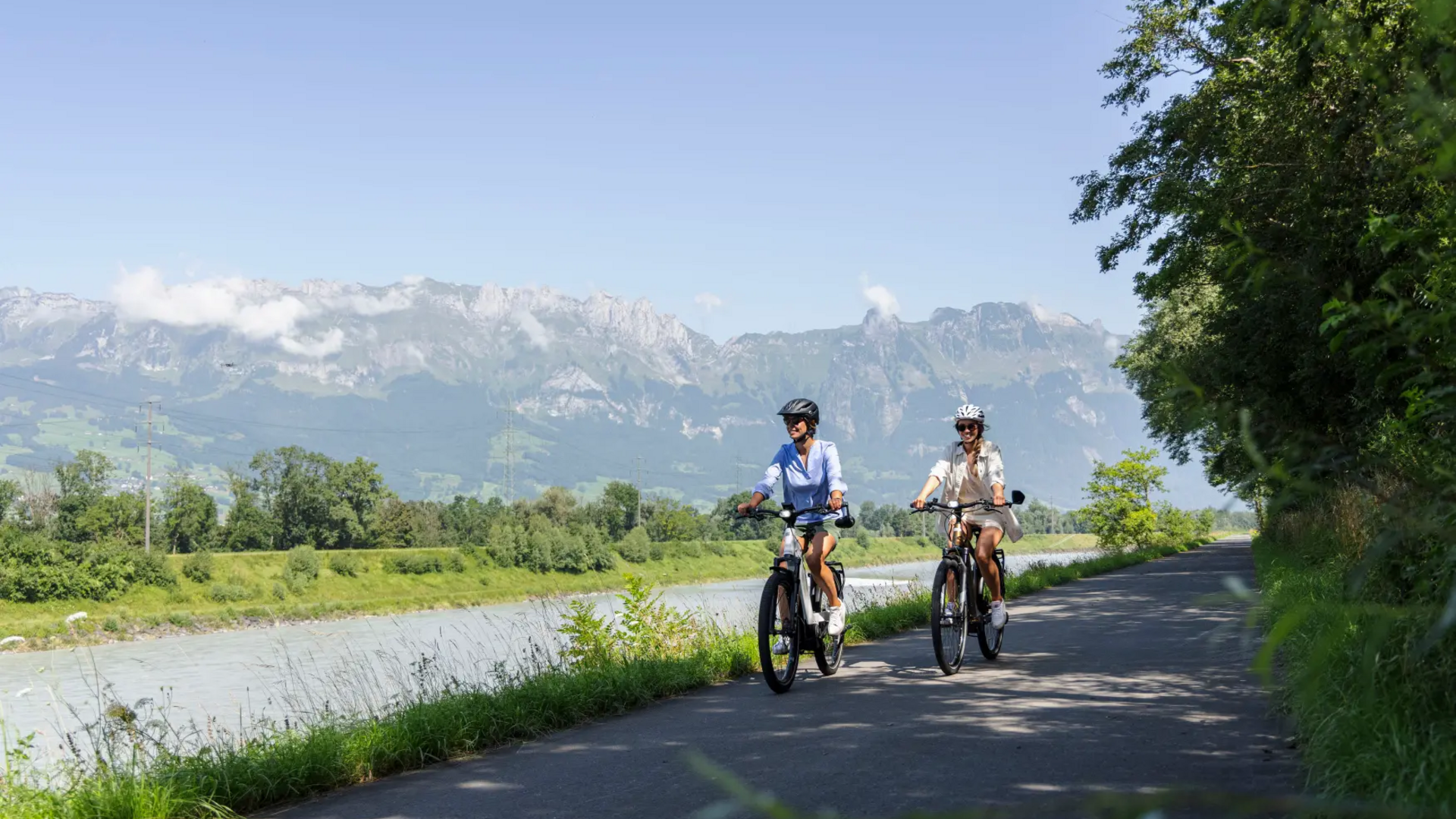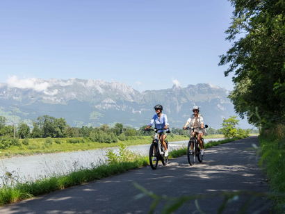 The Liechtenstein Rhine Valley Trail takes you between the Rhine plain and mountain peaks from Vaduz along the Eschnerberg to the medieval ambience of Feldkirch. In the floodplain forest you cycle down to the Illspitz, back to the Rhine as far as Meinigen. There you cross the Rhine and cycle along the Rhine route back to Buchs. Continue over the new energy bridge to Schaan and then along the Rhine back to Vaduz.