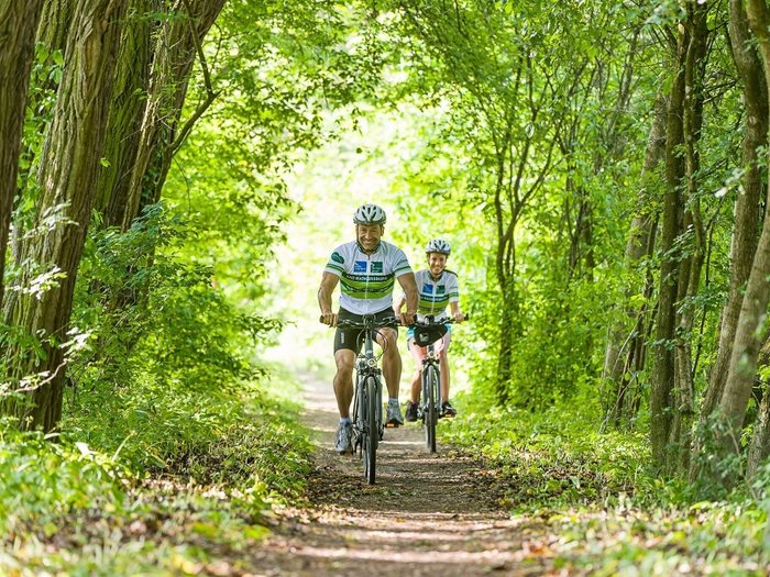 Passing the Madlhof community chapel, you reach the suspension bridge, which takes you directly to Slovenia - gentle vibrations accompany your crossing. You cycle on via Apace and cross the Pannonian forest in Apasko Polje. Thick oaks and metre-high ant hills bring the long-forgotten Indian game from childhood back to life. The well-known winegrower Steyer Vina in Plitvica will be happy to explain the baptised vineyard with over 128 different grape varieties. Passing behind the Schlossberg, on which Oberradkersburg Castle is enthroned, you cross the bridge over the River Mur and end your tour in Bad Radkersburg with the relaxing Parktherme spa. The well-tempered thermal water washes over your body, revitalising you and giving you a sense of calm and serenity. It does you good. And makes you want more cycling experiences.
