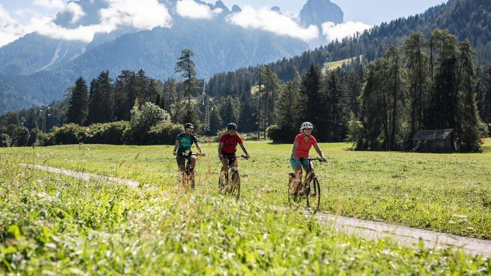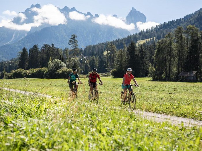 An unforgettable tour that leads to the "most beautiful" mountain lake in the Dolomites. From Villabassa/Niederdorf, take the cycle path towards Bressanone/Brixen and turn left across the military area towards Valle di Braies/Pragser Tal. From Schmieden, continue up the valley along the road until you reach the Pragser Wildsee lake. Here we recommend a circular walk around the lake with a stop at the Grünwaldalm. The return journey follows the same route.