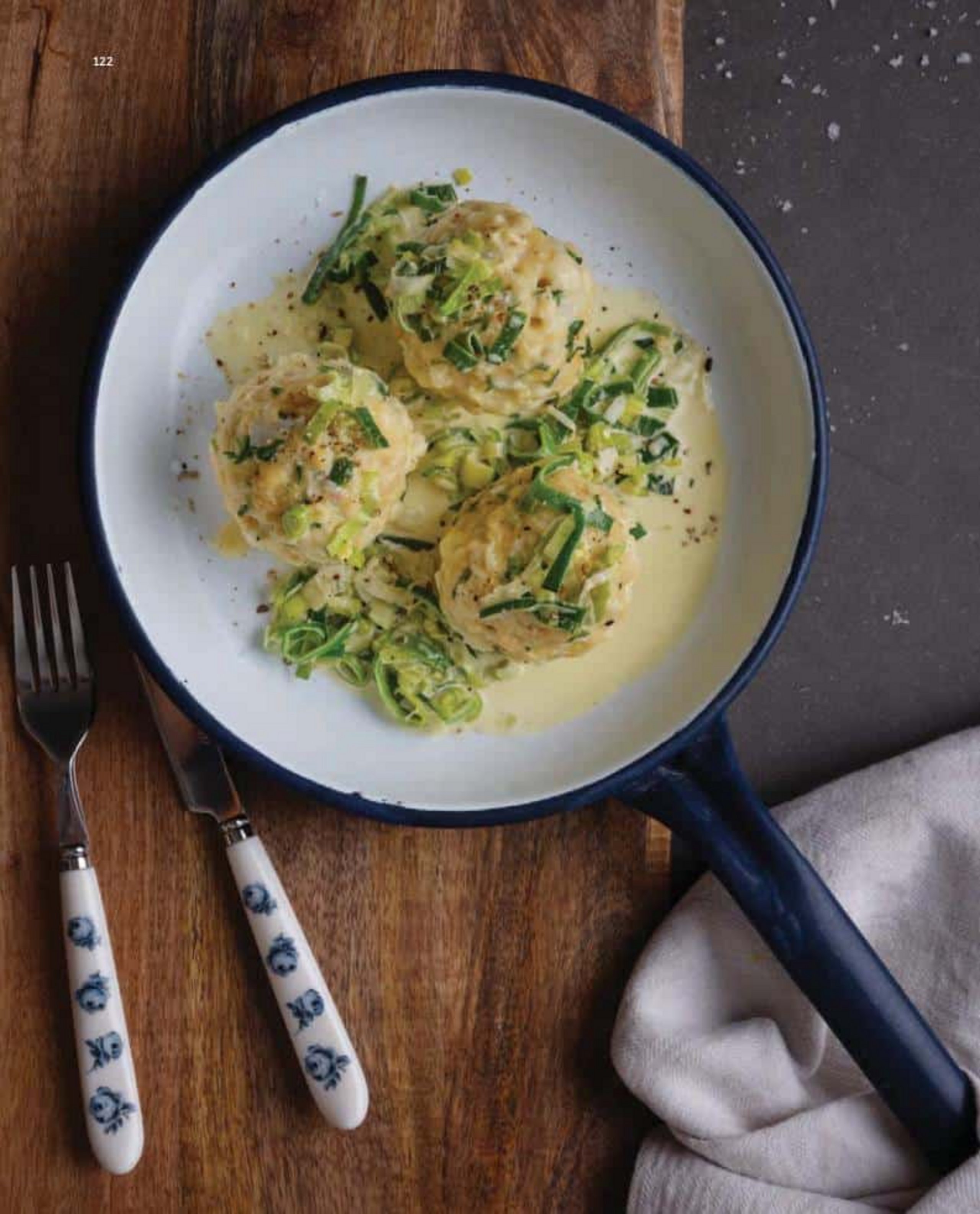 Gabriele recommends: I serve three dumplings per portion, accompanied by creamy leek vegetables.