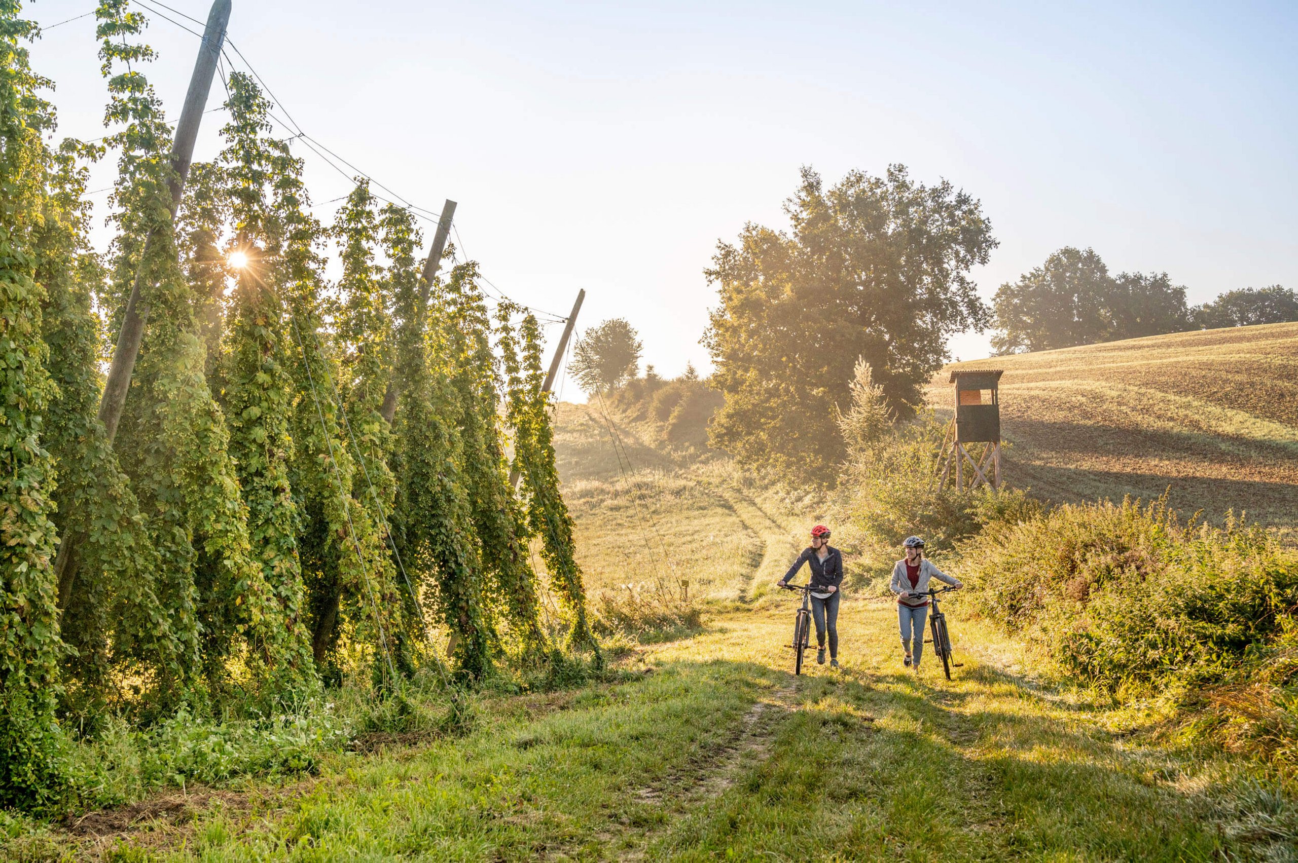 Die Hopfenschleife der Wasser-Radlwege in Oberbayern führt dich auf rund 350 km durch die Hallertau, das größte Hopfenanbaugebiet der Welt. Entlang von Isar und Donau erwarten dich idyllische Landschaften, Braukultur, Biergärten und vielfältige Radabschnitte für jedes Fitnesslevel.